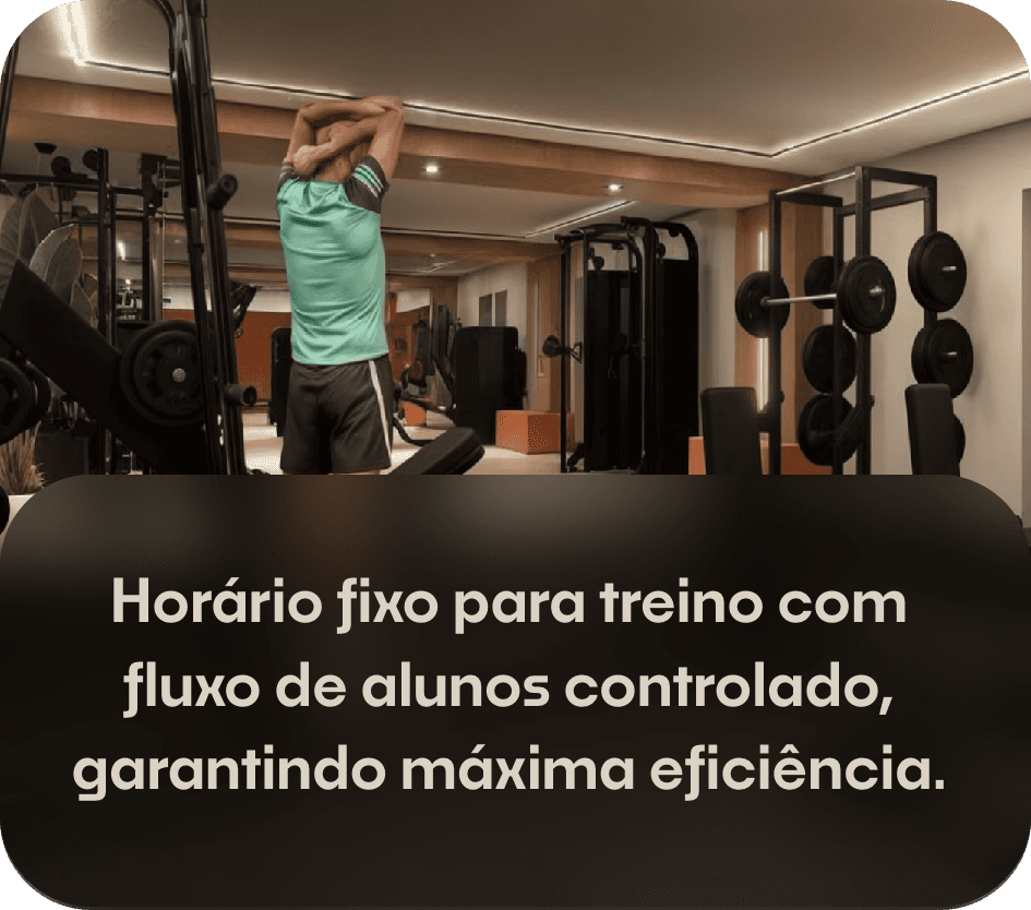 Nossa equipe multidisciplinar, formada por profissionais de educação física, nutrição, massoterapia e especialistas integrados, revisa sua evolução regularmente, realizando ajustes estratégicos para maximizar desempenho, resultados e bem-estar geral.